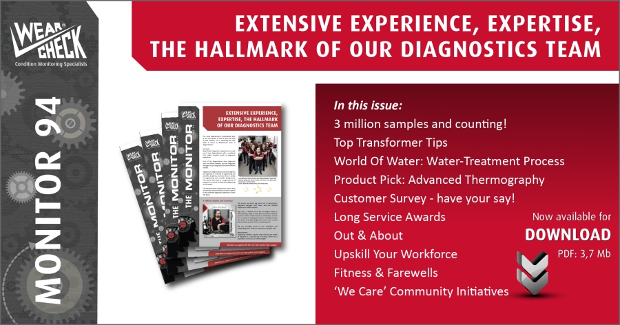 A bumper edition of our Monitor newsletter is hot off the press today! It is bursting with interesting stories on anti-wear additives, the huge milestones achieved by our diagnostics team, WearCheck’s support of the epic rally in aid of cancer in Namibia, an overview of water treatment, key insights into thermography and a new course, impressive staff accomplishments, a useful transformer tip, a warm welcome to new members, information on all our upcoming training courses, and lots more!